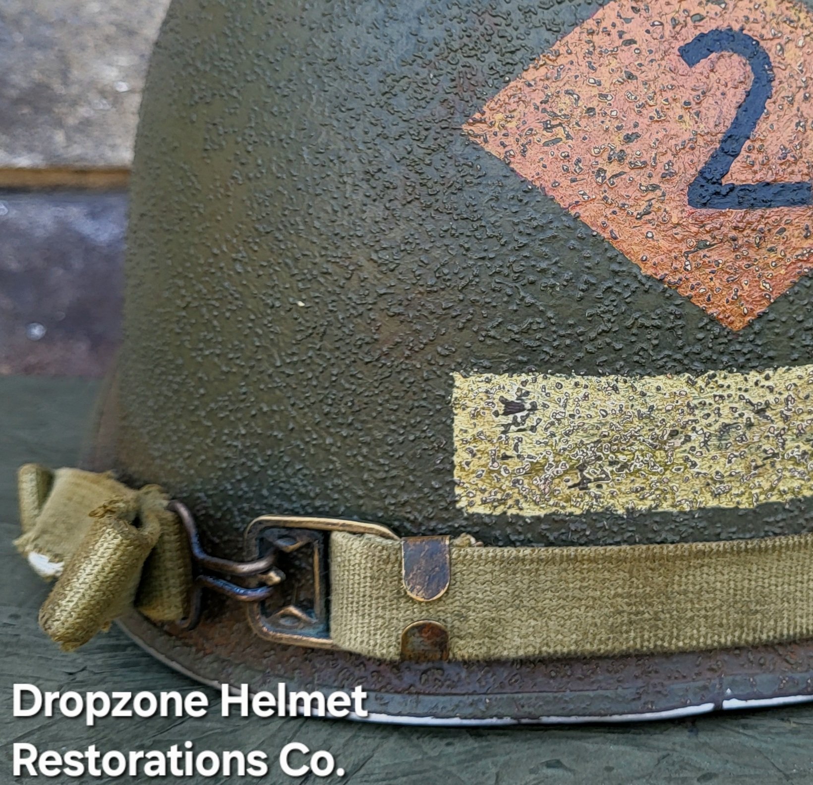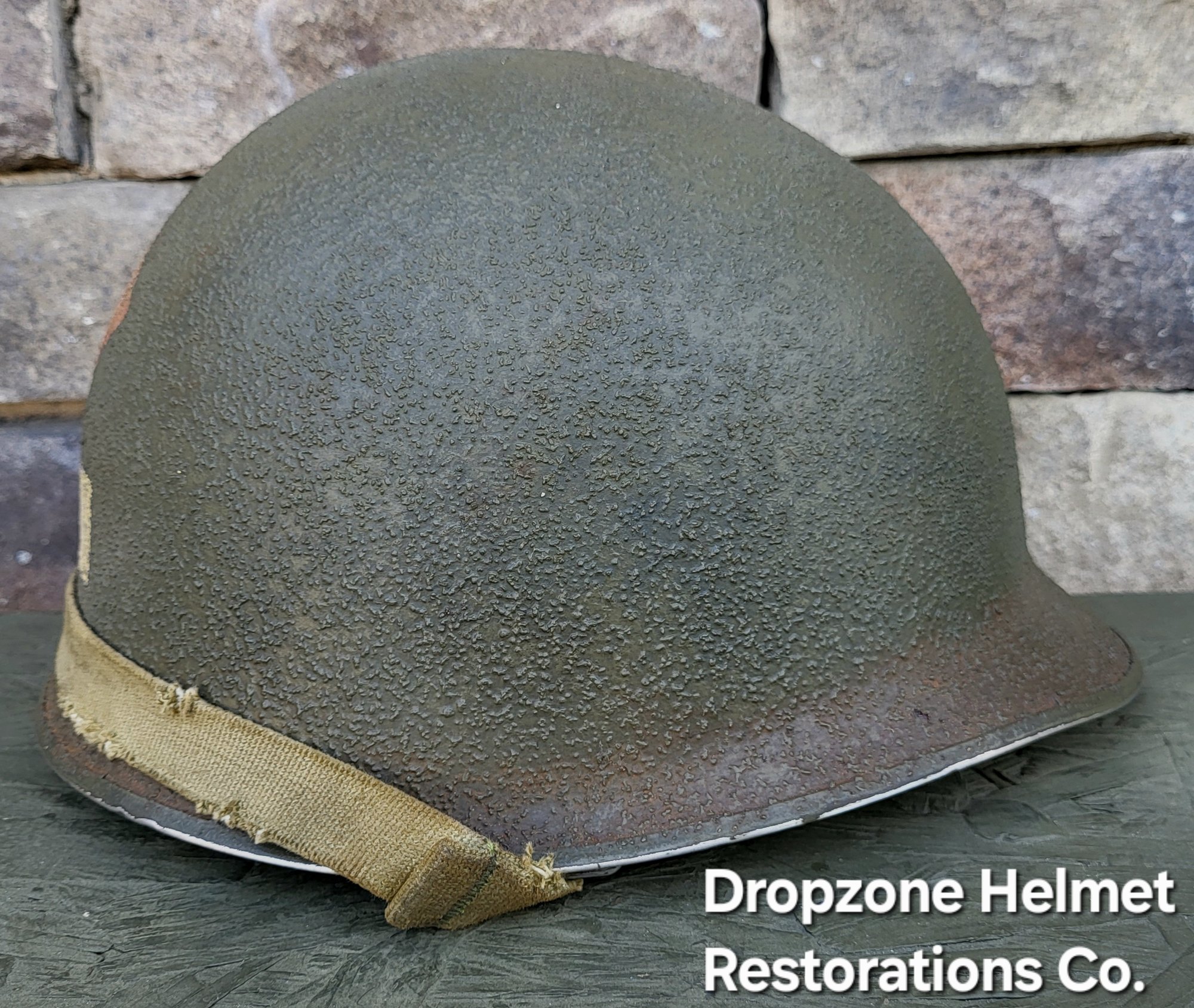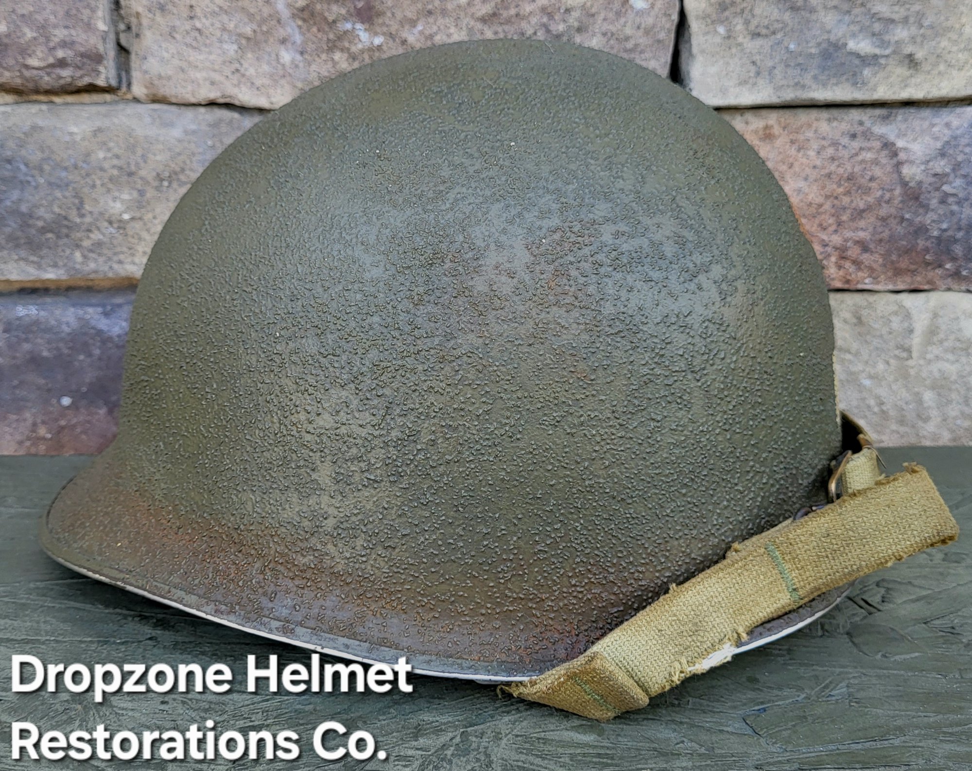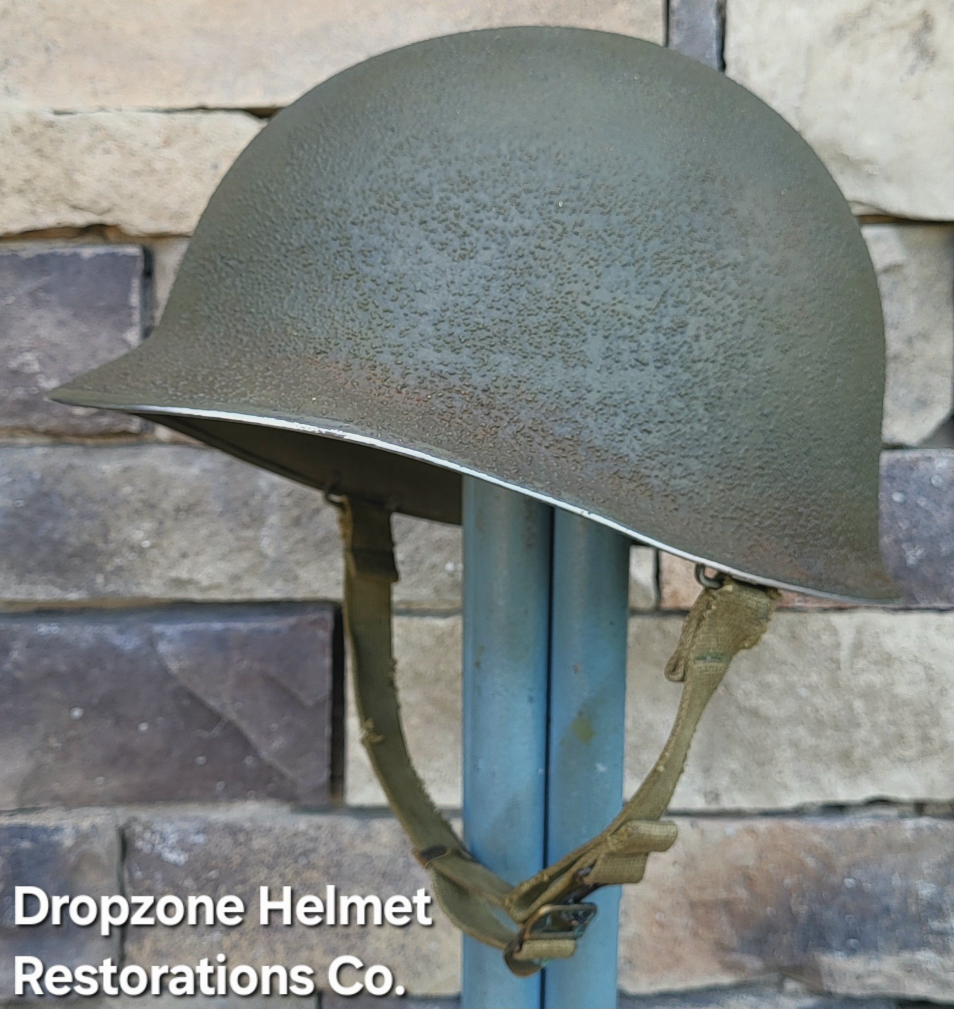 For your consideration is a Norwegian M1 style helmet that has been fully restored in the exact same fashion as all Dropzone Helmets are. New texture, OD paint, Jmurrayinc1944 chinstraps. The 2nd Ranger Bn & NCO rank markings were hand painted By Me, then aged & weathered for a "Combat Worn" appearance. The new fixed bales are a spot match to originals.